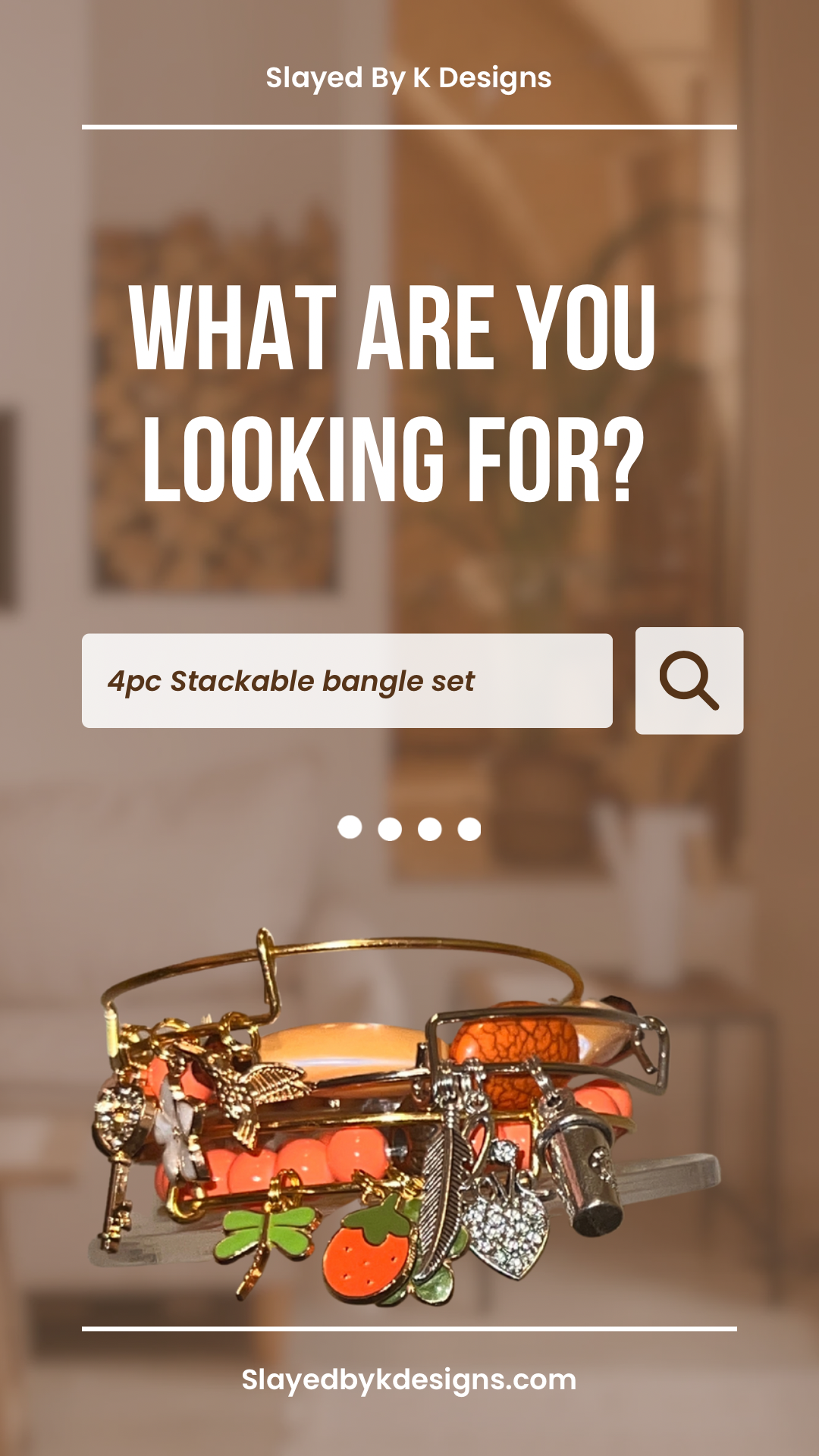 Order this four piece, orange stackable bangle set beautiful for any occasion."Unleash your unique style with our Orange 4pc Stackable Bangle set! Perfect for any occasion, these beautiful bangles can be stacked for a playful look. Limited edition, so grab yours today!"